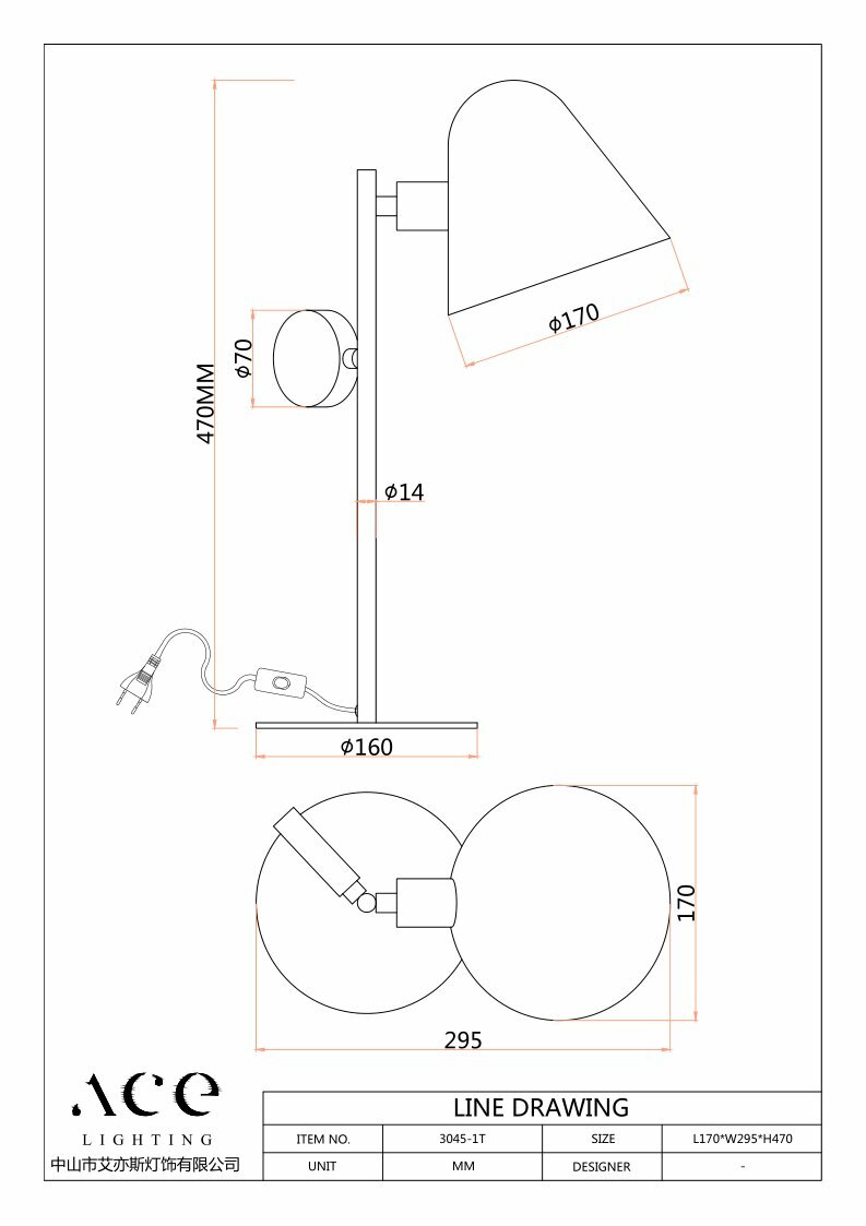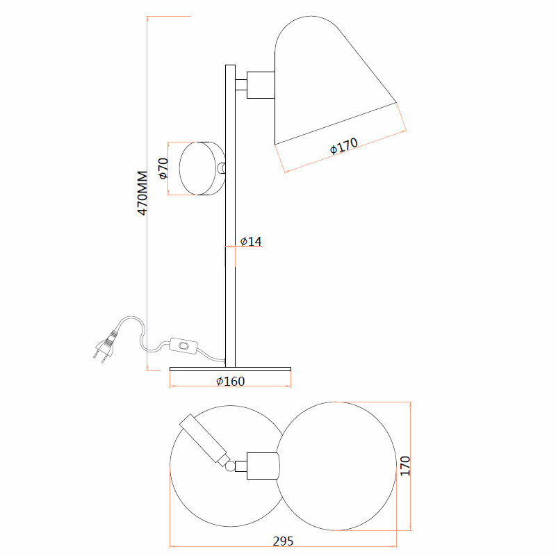 3045-1T, настольный светильник, L170xW295xH470, 1xE14x40W, excluded