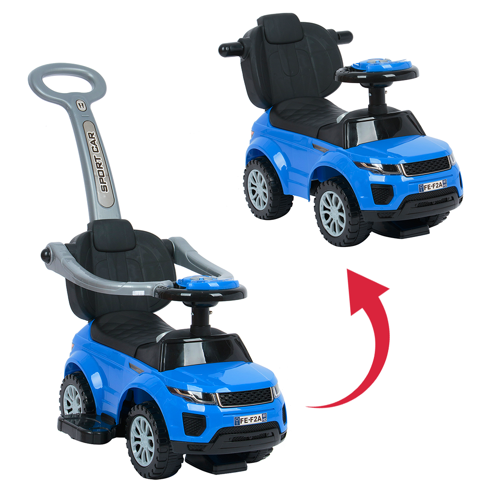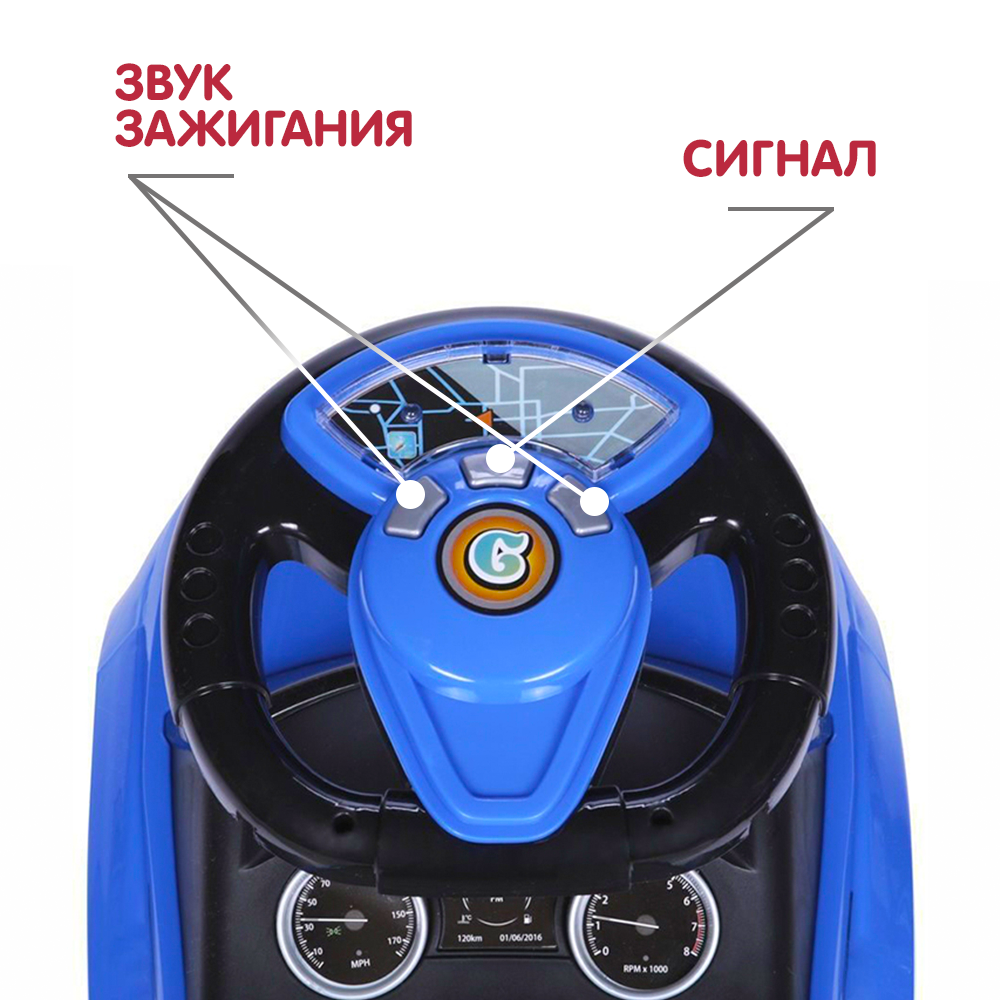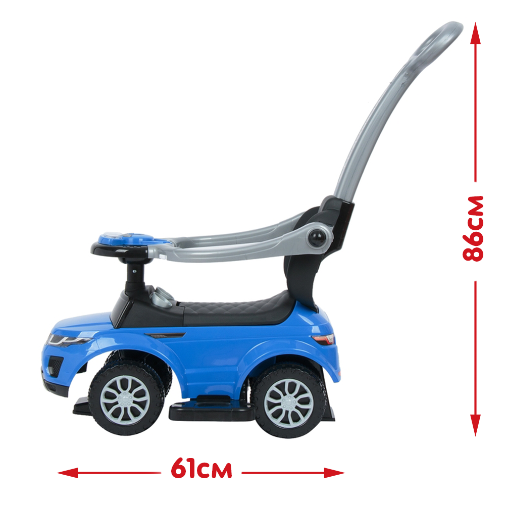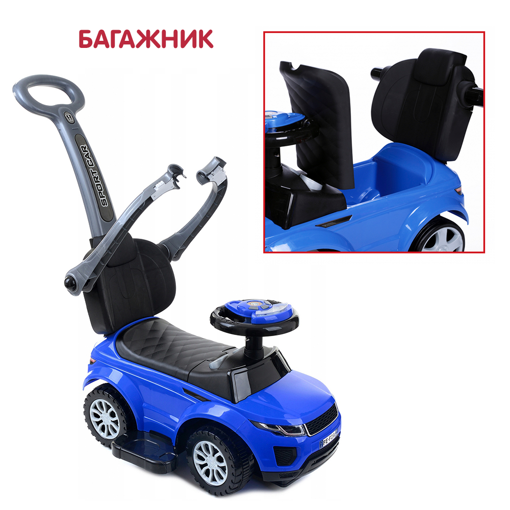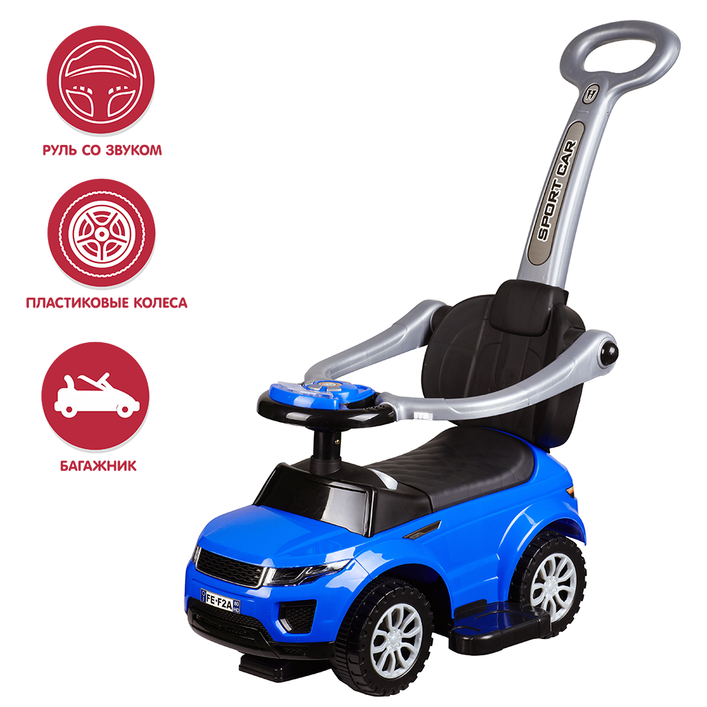 Купить Каталка-пушкар с родительской ручкой, со светом и звуком, синяя