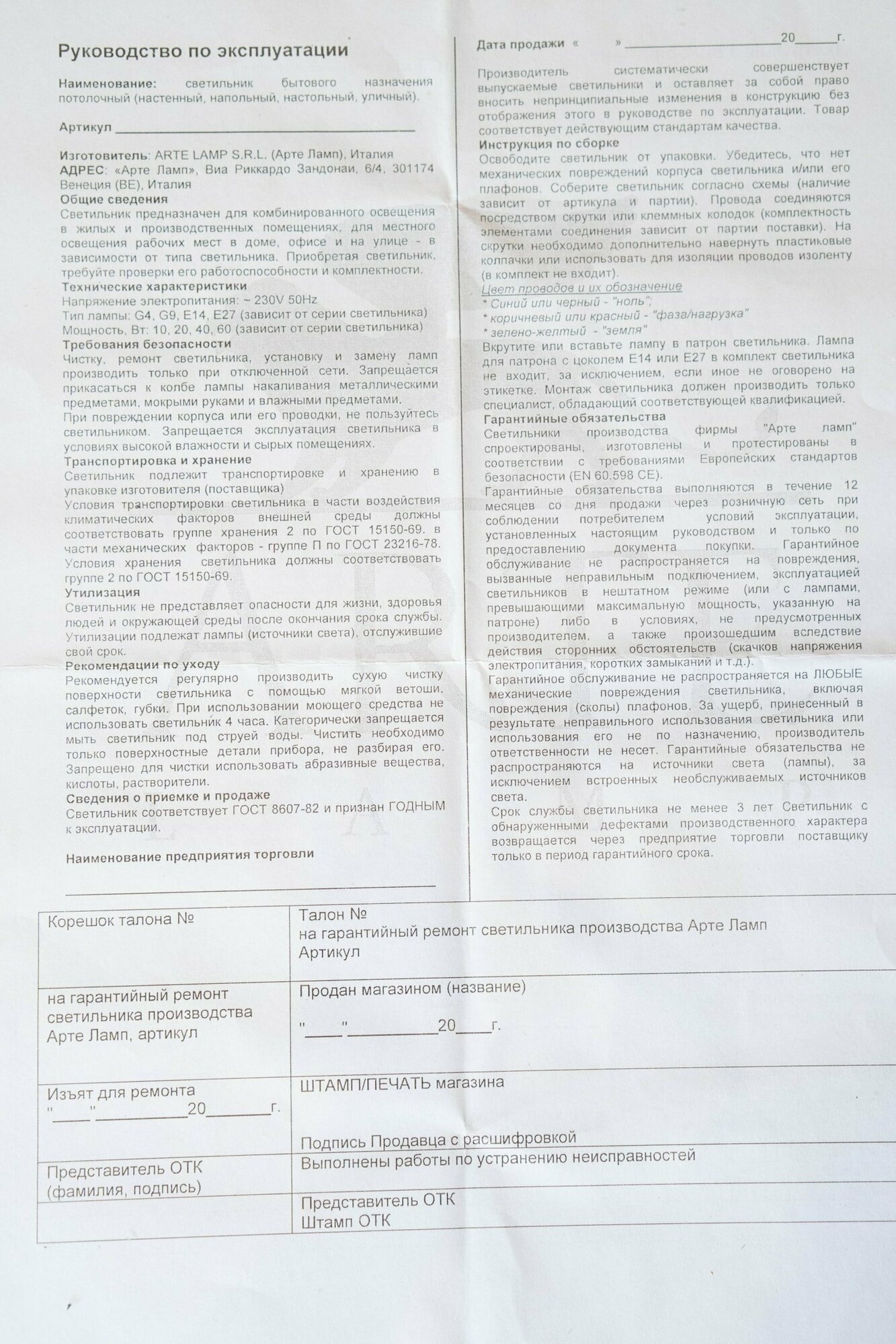 Спот Arte Lamp SOSPIRO A6141AP-1AB интересное: