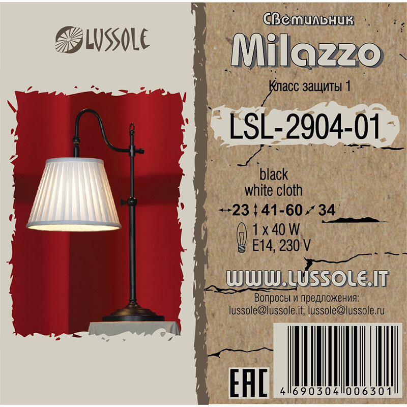 Настольная лампа Lussole Milazzo LSL-2904-01, Белый, E14 40