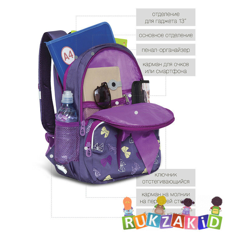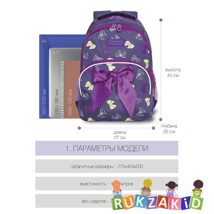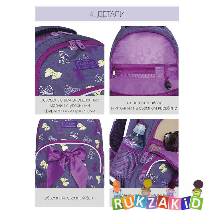 Рюкзак школьный Grizzly RG-160-3 Бантики Фиолетовый интересное: