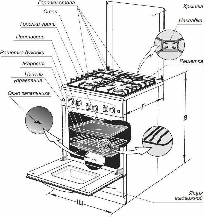 | Плюсы: | Газ контроль верха и низа, газовый гриль + вертел. |