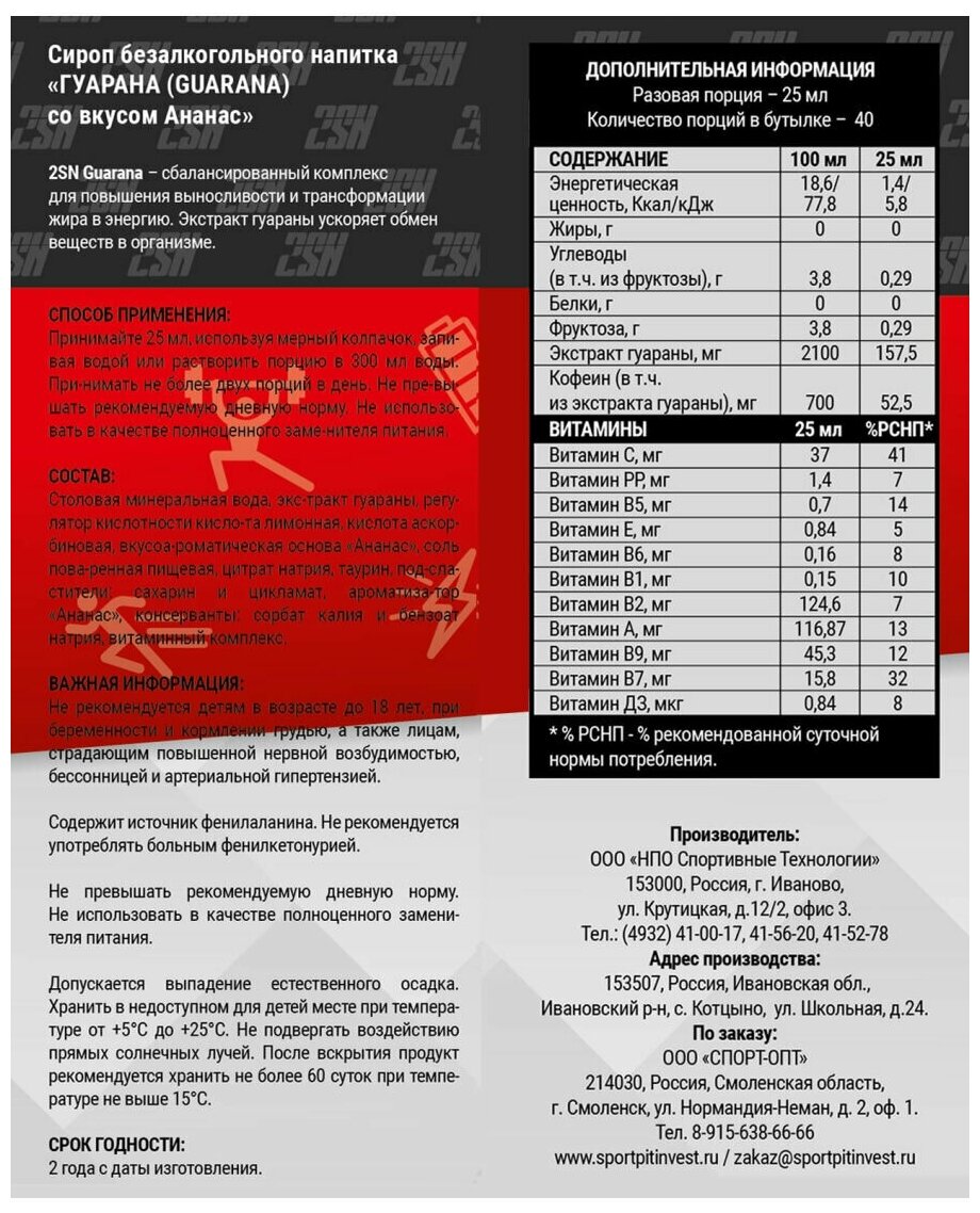 2SN Guarana 50 000mg (500мл) Ананас