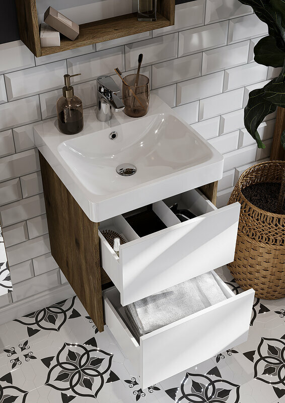 Тумба под раковину для ванной Aquaton Сканди 55 белая, дуб верона 1A251701SDB20