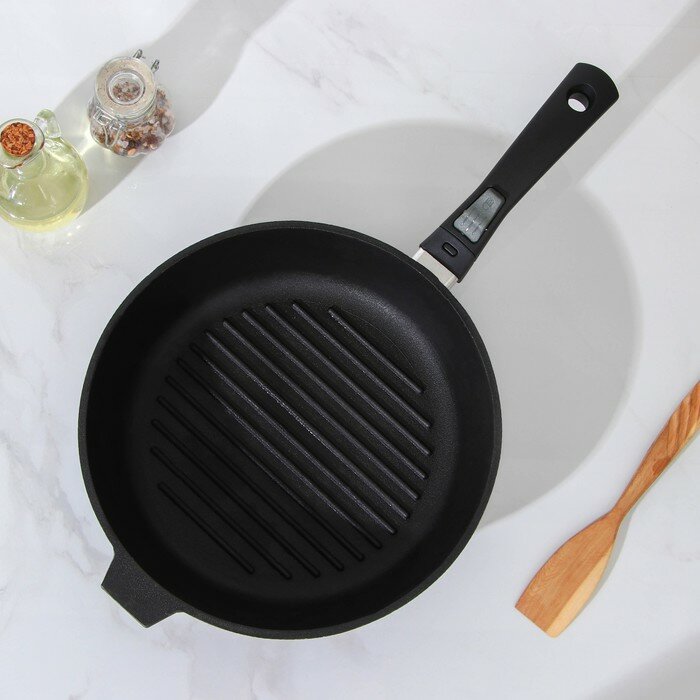 Купить Сковорода-гриль, d=28 см, съёмная ручка, чугунная крышка, цвет чёрный