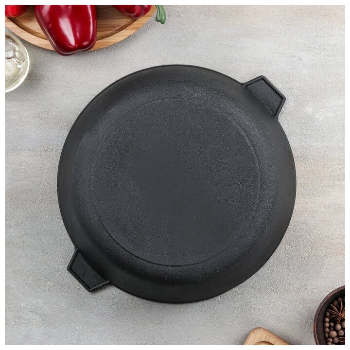 Сковорода Камская посуда у8081 чугунная 280х80 с двумя ушками с алюминиевой крышкой
