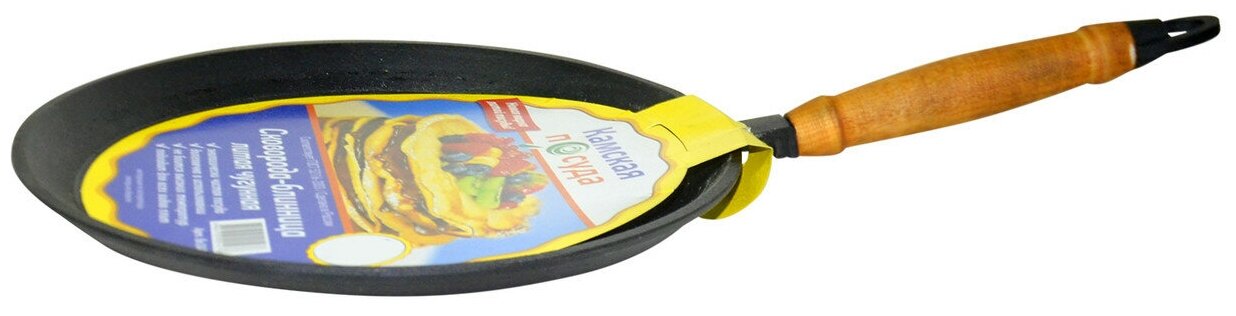 Сковорода блинная Камская посуда бл220 чугунная блинная 220х15 с деревянной ручкой