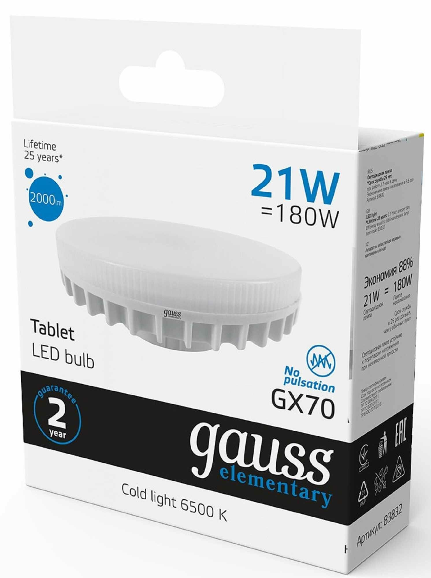 Лампа светодиодная Gauss Elementary GX70 21W 2000LM 6500K интересное: