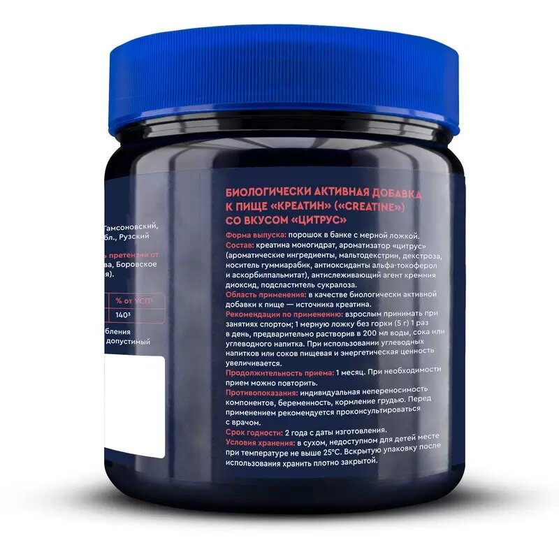 Креатин моногидрат порошок/Creatine Monohydrate, аминокислота / спортивное питание для набора массы и роста мышц, без сахара со вкусом цитрус, 300 гр