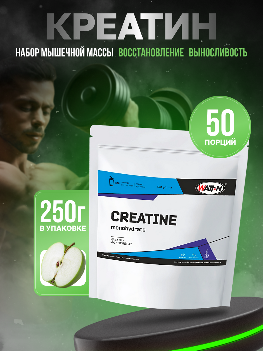 Купить WATT NUTRITION Creatine Monohydrate / Креатин моногидрат, 250 гр, зеленое яблоко