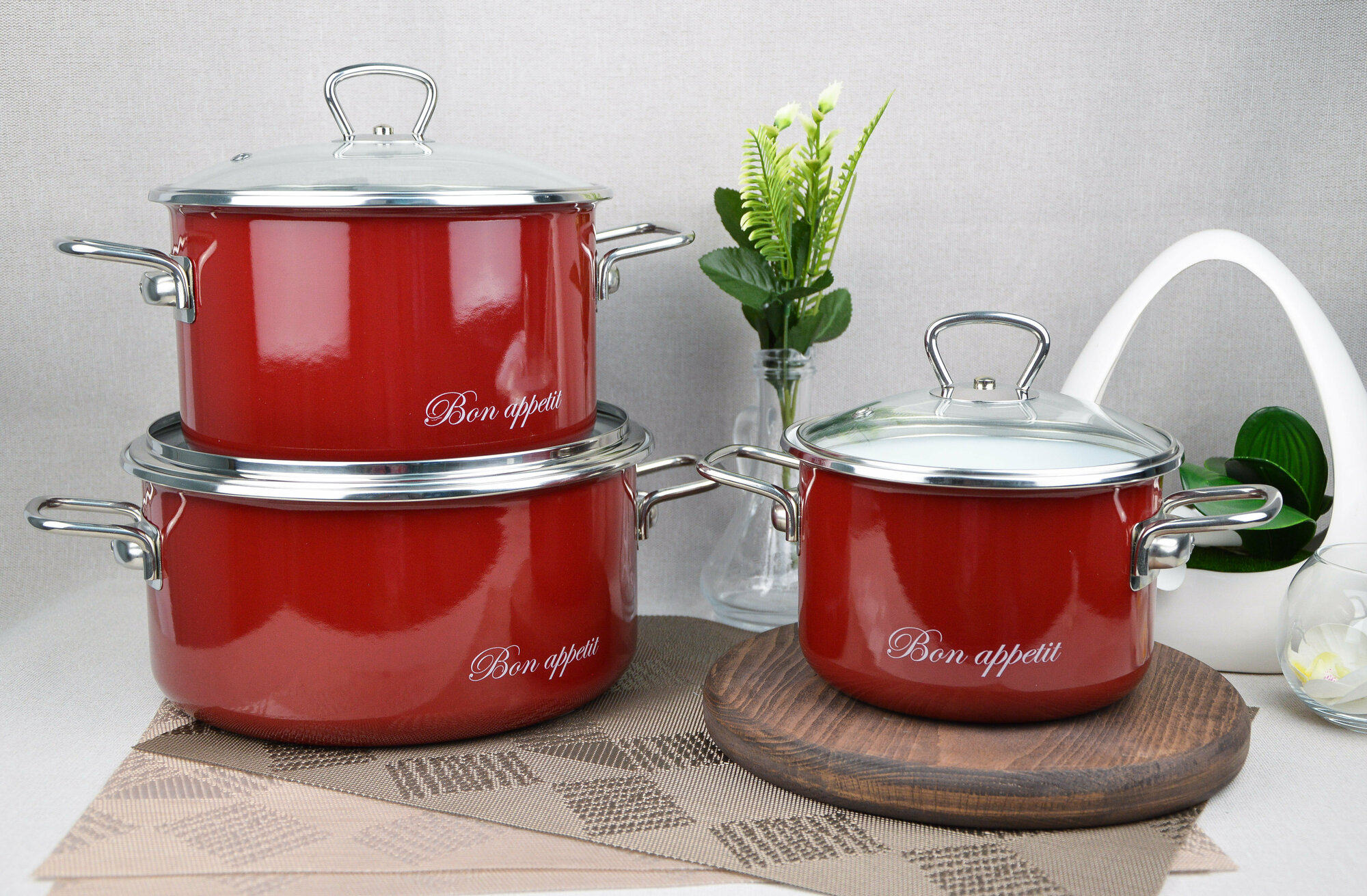 Купить Набор эмалированных кастрюль Vitross Bon appetit, 6 предметов, вишневый