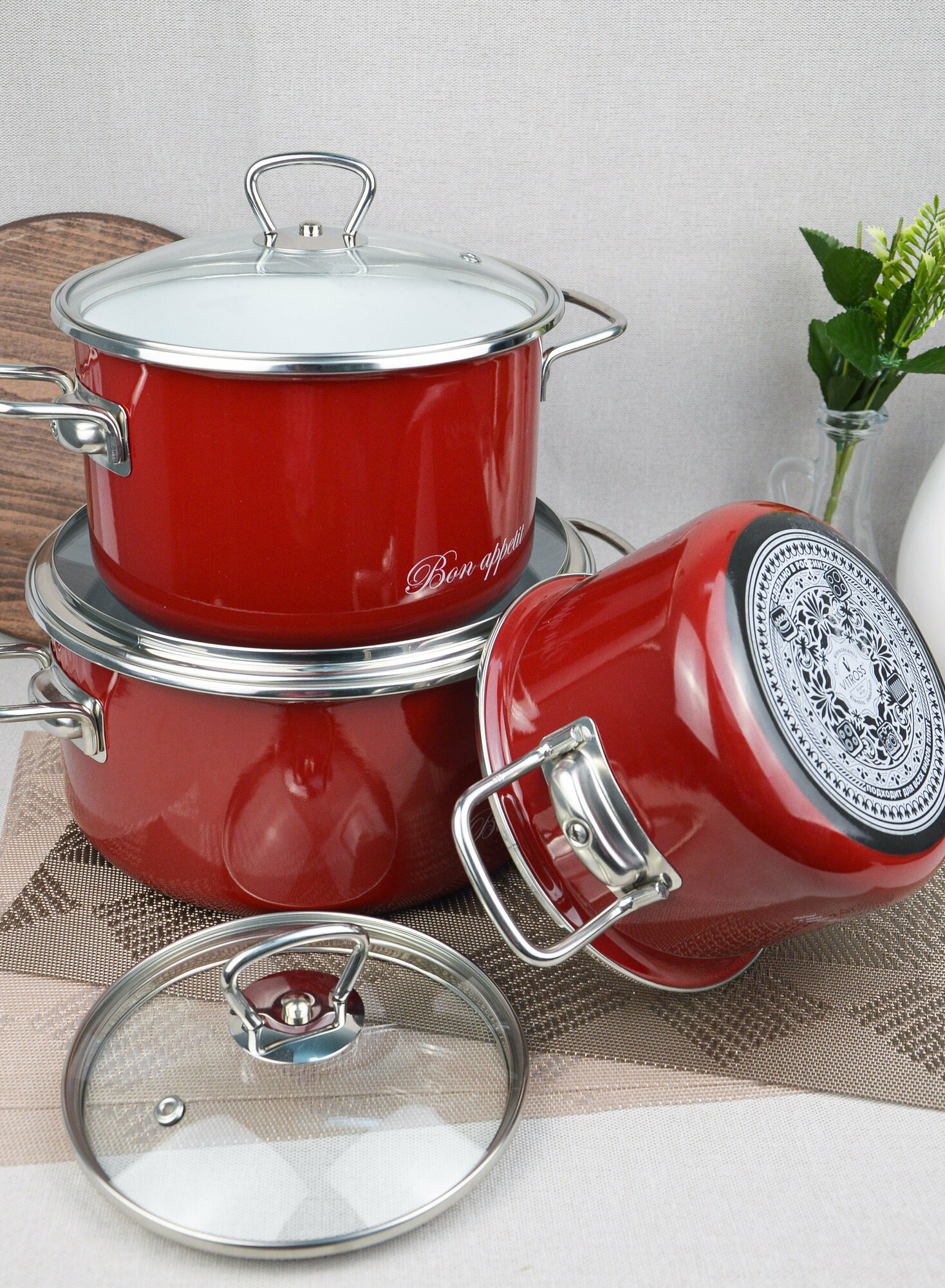 Набор кастрюль СтальЭмаль 8DB035S 6 пр. вишневый