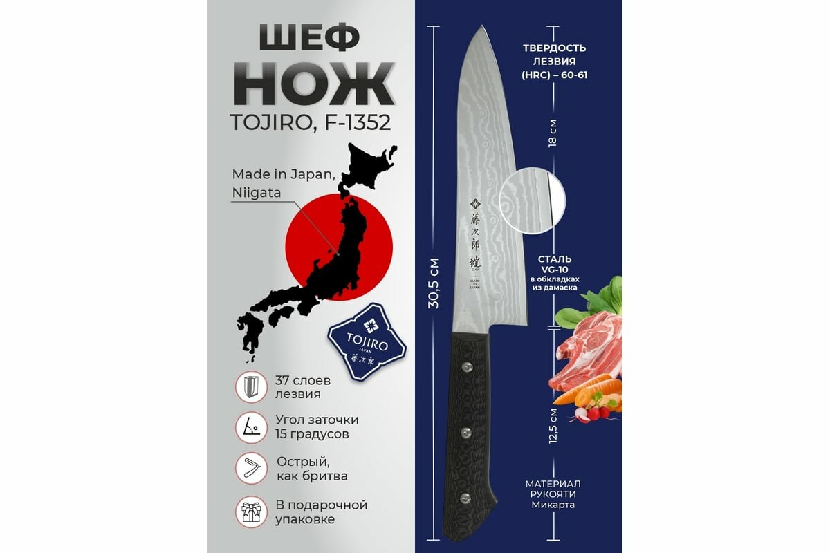 Ниже Вы можете прочитать отзывы на Шеф Нож TOJIRO F-1352, ознакомится с подробными характеристиками, посмотреть интересные обзоры и фотографии на Шеф Нож TOJIRO F-1352.