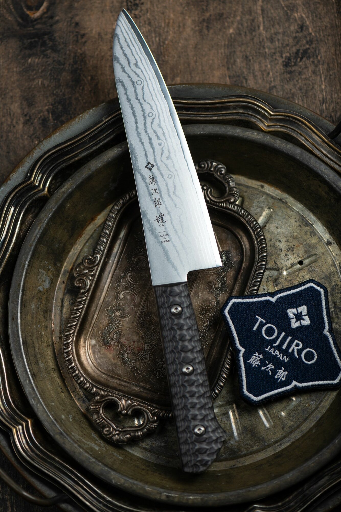 TOJIRO Нож кухонный поварской длина лезвия 180 мм, сталь vg10, 37 слоев, рукоять микарта F-1352