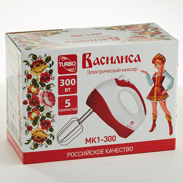 Миксер василиса МК1-300 белый с синим: 300Вт,режим "Турбо",5 скорост.режимов (Россия)(12)