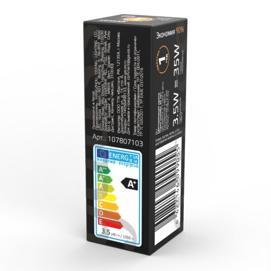 | Эквивалент лампы накаливания | 35 Вт |