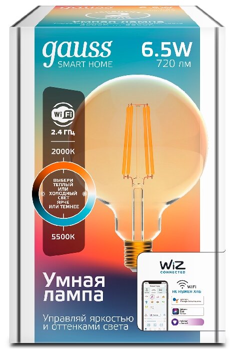 Ниже Вы можете прочитать отзывы на Умная Wi-Fi лампочка Gauss Smart Home Filament G95 7W 740лм E27 управление голосом/смартфоном, с изменением температуры, диммируемая, ознакомится с подробными характеристиками, посмотреть интересные обзоры и фотографии на Умная Wi-Fi лампочка Gauss Smart Home Filament G95 7W 740лм E27 управление голосом/смартфоном, с изменением температуры, диммируемая.