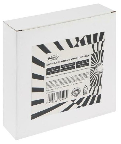 Встраиваемый светильник Luazon Lighting 10W, 800Lm, 2700-6500 K, пульт, 108 мм, 220 В интересное: