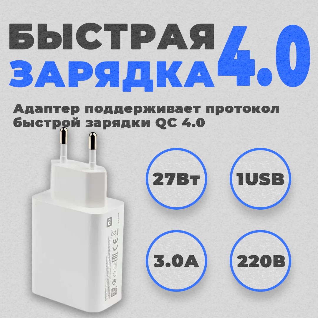 Адаптер питания +кабель Xiaomi MDY-10-EL 27W Quick Charge 3.0 Зарядное устройство Блок Зарядка