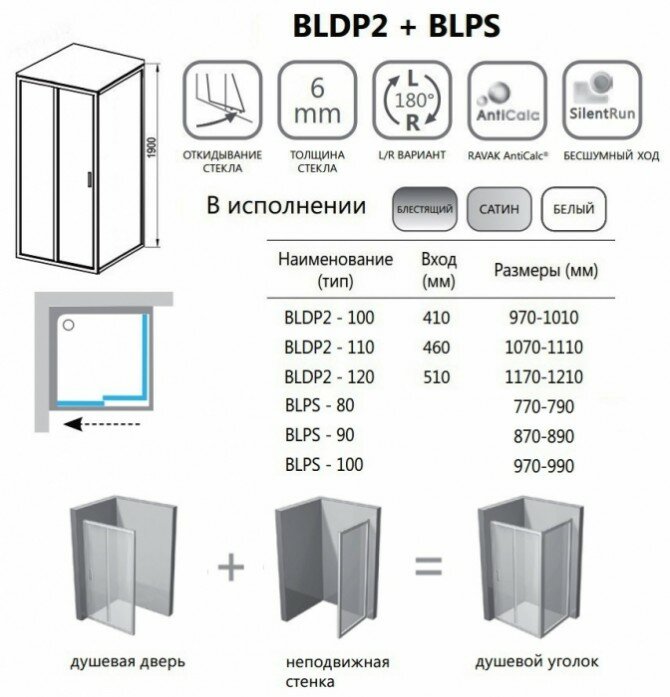 Душевой уголок Ravak Blix BLDP2/BLPS 110x100 интересное: