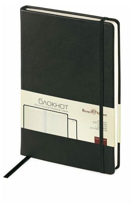 Купить Блокнот 100л, А5 Bruno Visconti Megapolis Velvet, клетка, на сшивке, черный (144х212мм) (3-525/02)