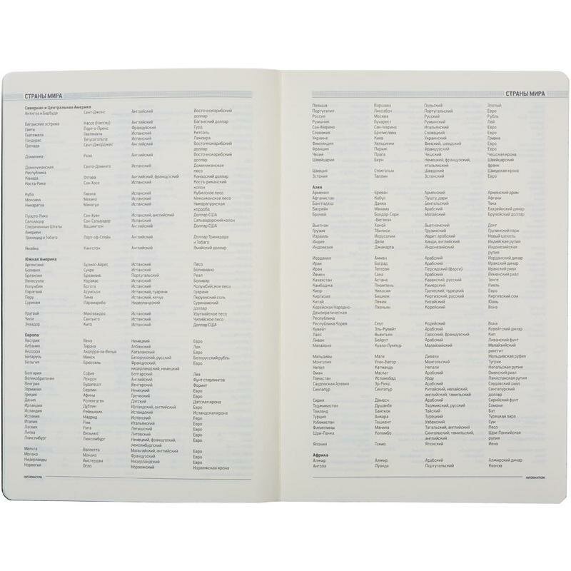 | Дополнительная информация | Без полей;Доп. горизонтальные линии;Справочная информация;Закругленные углы;Телефонная книга; вес 337 г |