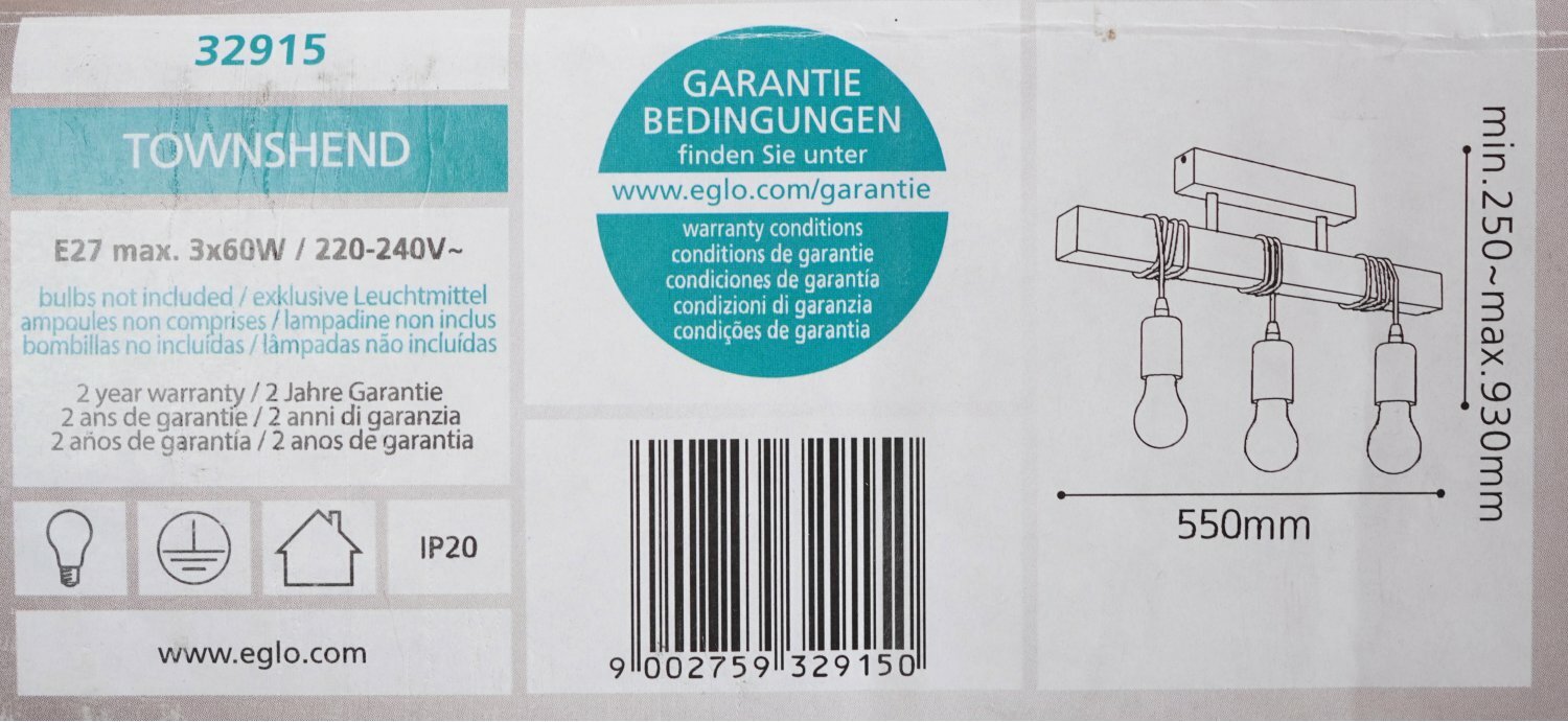Светильник потолочный Eglo TOWNSHEND, 32915, 180W, E27