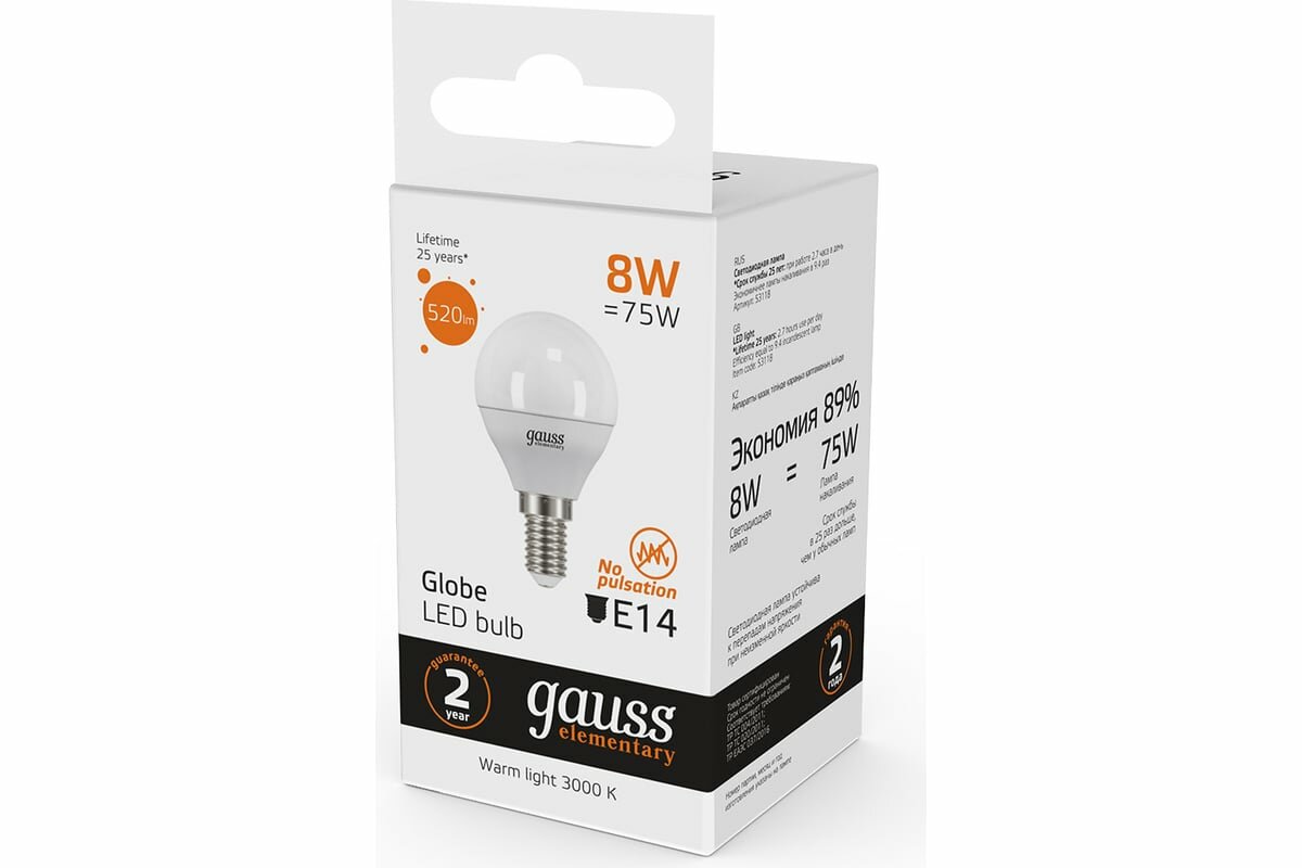 | Плюсы: | Gauss)) многолетнее проверенное качество. при кажущейся дороговизне лампы работают намного дольше и стабильнее |