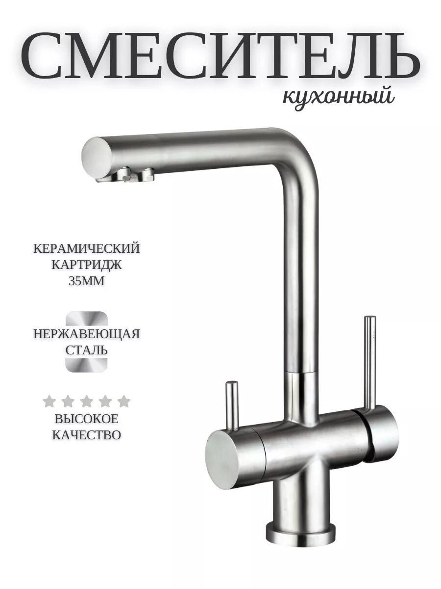 Смеситель для кухни с подключением к фильтру FLORENTINA Арес SS , нержавеющая сталь