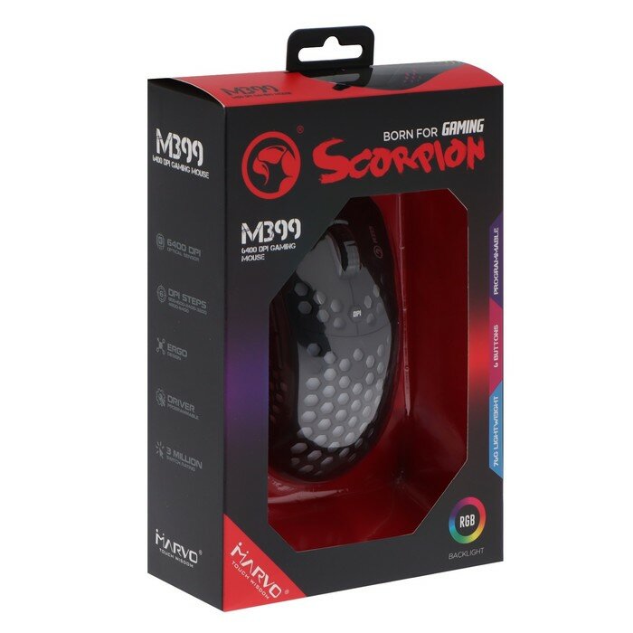 Ниже Вы можете прочитать отзывы на Marvo Мышь MARVO M399, игровая, проводная, подсветка, 6400 dpi, USB, чёрная, ознакомится с подробными характеристиками, посмотреть интересные обзоры и фотографии на Marvo Мышь MARVO M399, игровая, проводная, подсветка, 6400 dpi, USB, чёрная.
