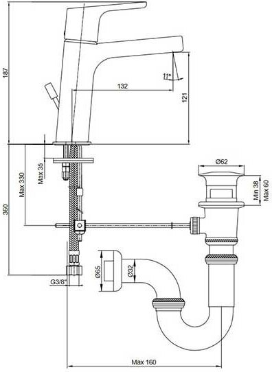 Смеситель для раковины с донным клапаном E.C.A. Luna 102108947EX