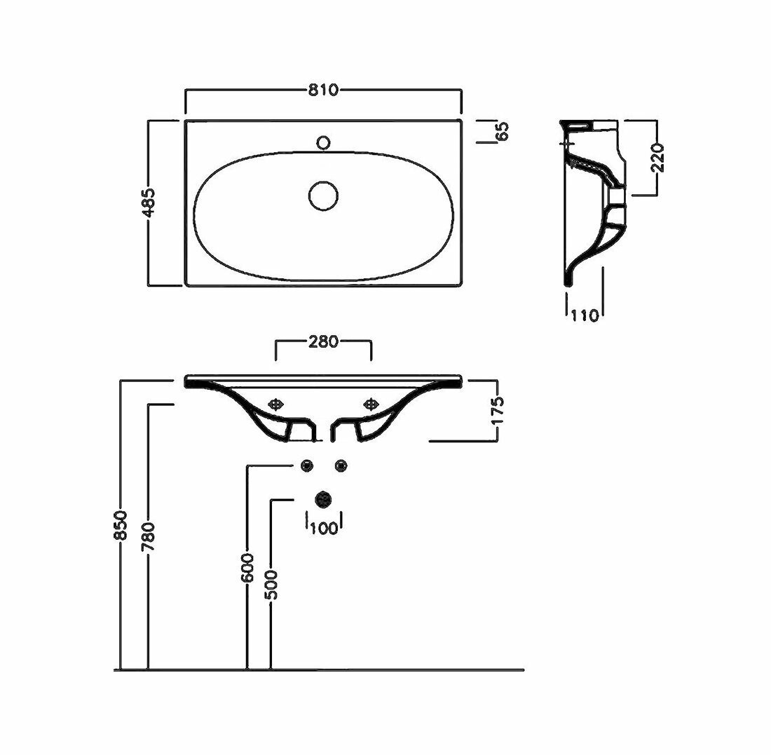 | Расположение отверстия под смеситель | в центре |
