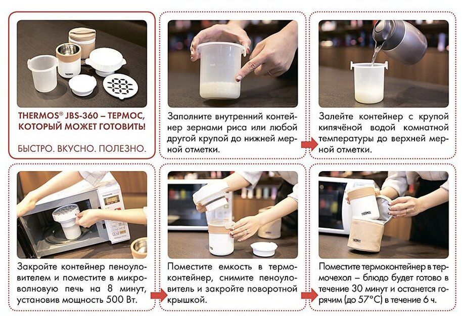 | Отзыв: | Покупал в подарок жене, она любительница здорового питания, еда на пару - это ее бзик. Искал, что существует на рынке товаров, чтобы можно было готовить на пару в микроволновке, нашел пароварку для яиц и этот термос. Термос выше всяких похвал, готовил по утрам, когда и без того мало времени, рис "доходит" сам в чехле, пока идешь на работу. А там вприкуску с салатиком или котлетой само то. Тепло держит, продуманный, удобный. |