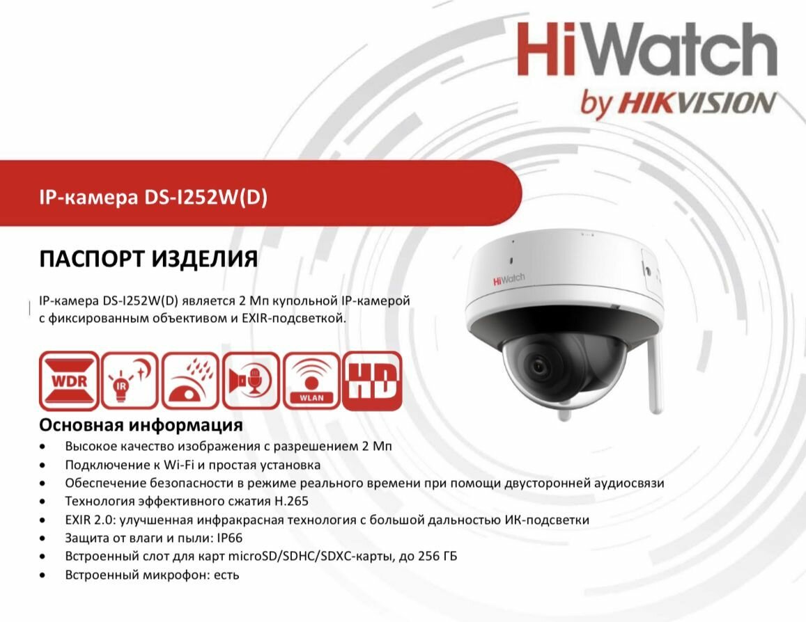 Ниже Вы можете прочитать отзывы на IP-камера HiWatch DS-I252W(D) (2.8mm), ознакомится с подробными характеристиками, посмотреть интересные обзоры и фотографии на IP-камера HiWatch DS-I252W(D) (2.8mm).