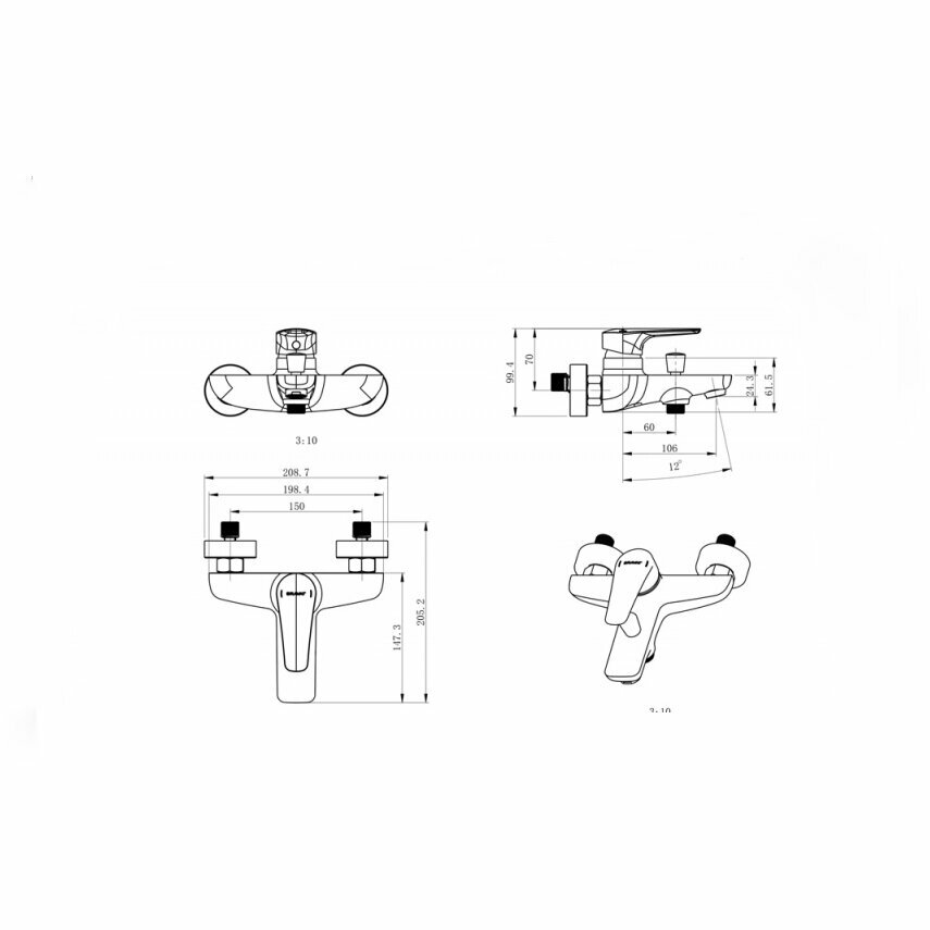 | Длина излива | 106 мм |