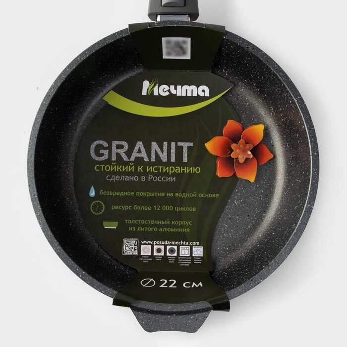Сковорода «Гранит», d=22 см, съёмная ручка, антипригарное покрытие, цвет серый интересное: