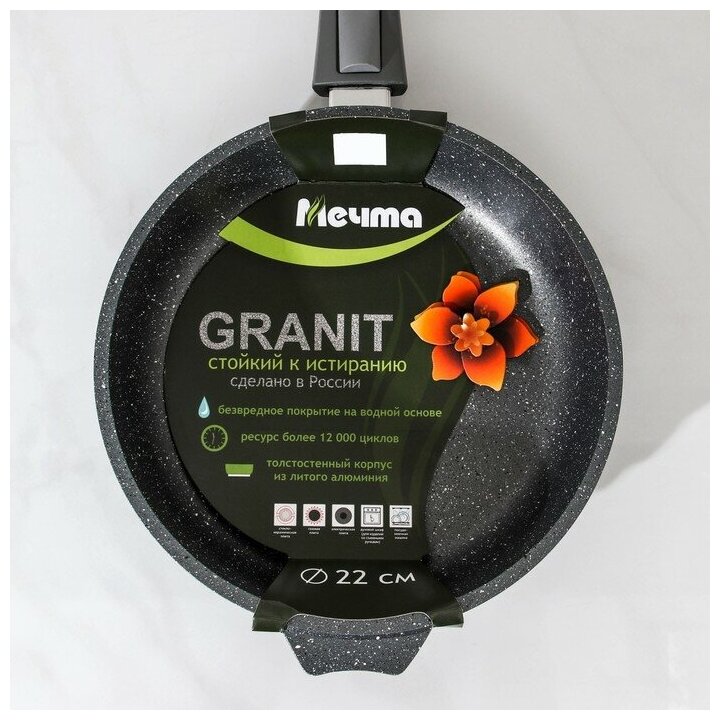 Мечта Сковорода «Гранит», d=22 см, съёмная ручка, антипригарное покрытие, цвет серый интересное: