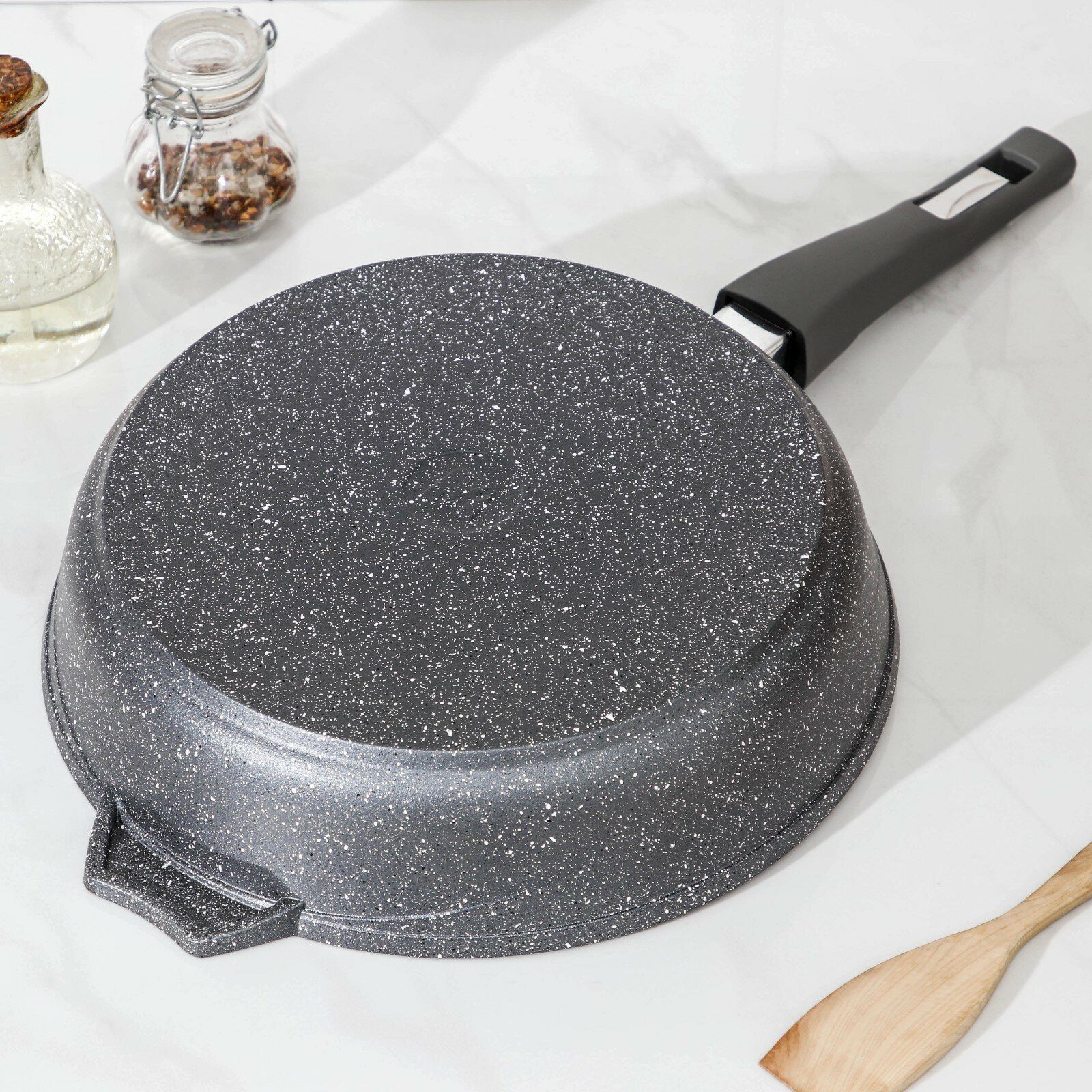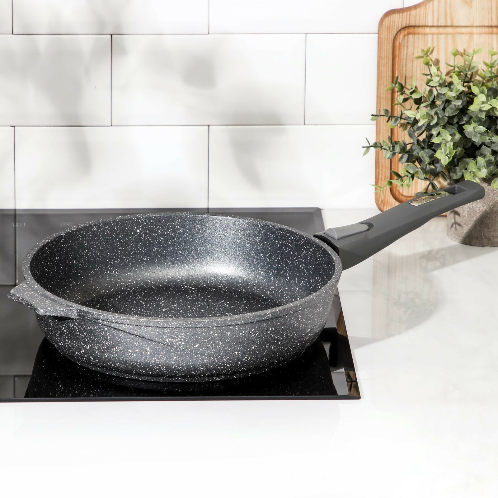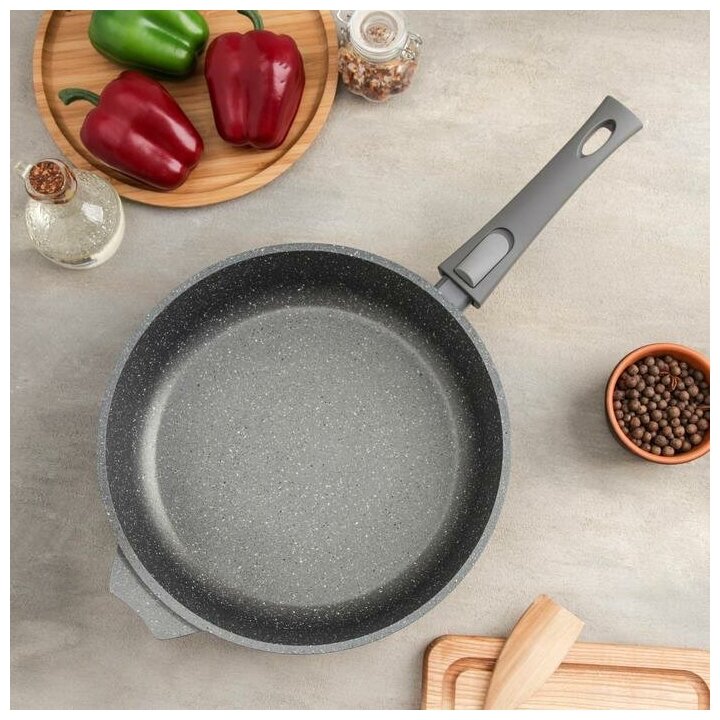Купить Сковорода "Гранит", d=28 см, съёмная ручка, антипригарное покрытие, цвет серый