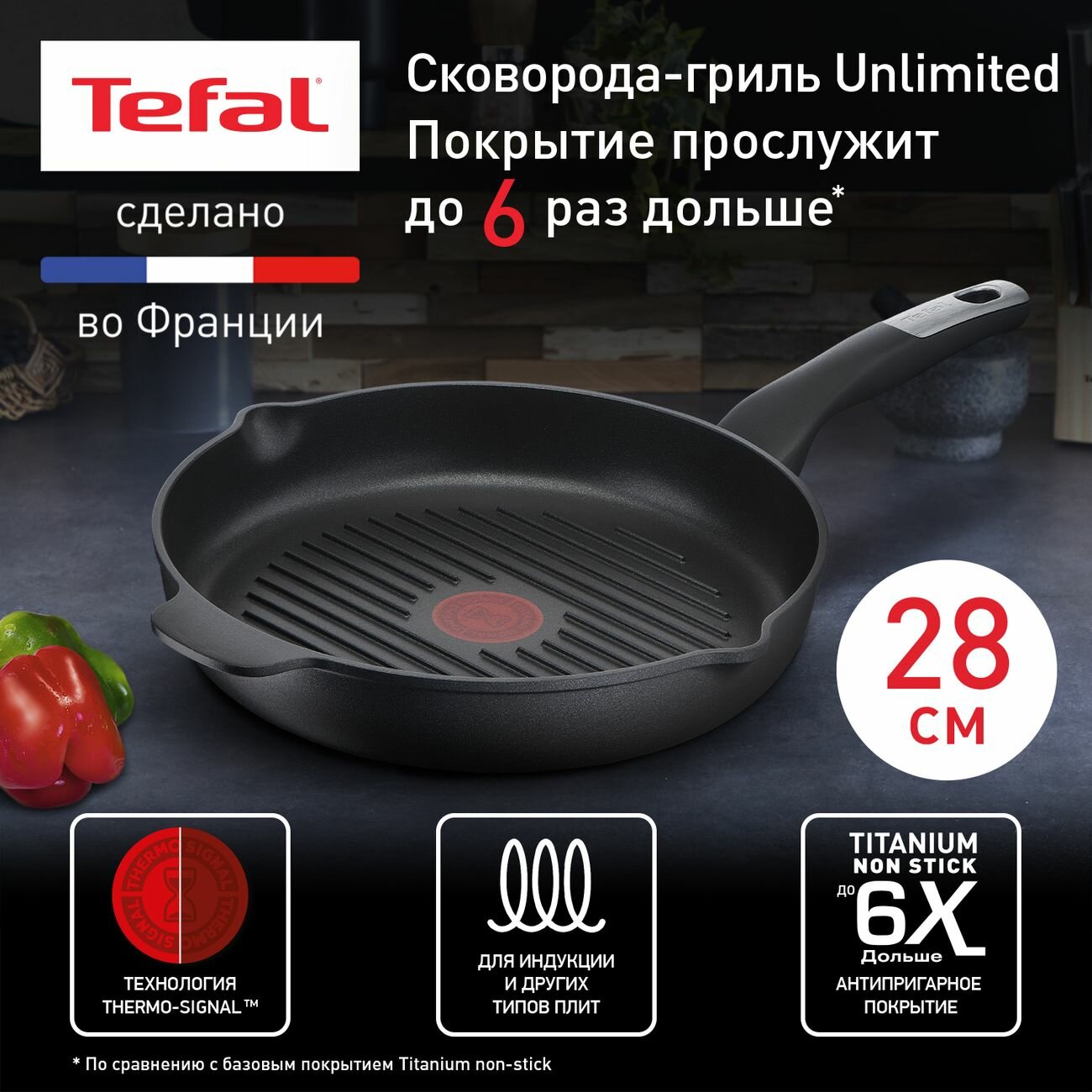 Сковорода гриль Tefal Unlimited 26 см E2294074 интересное: