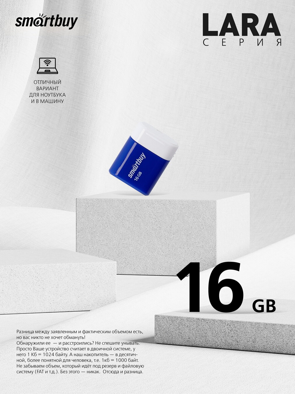Флешка SmartBuy Lara 16 ГБ, 1 шт., синий