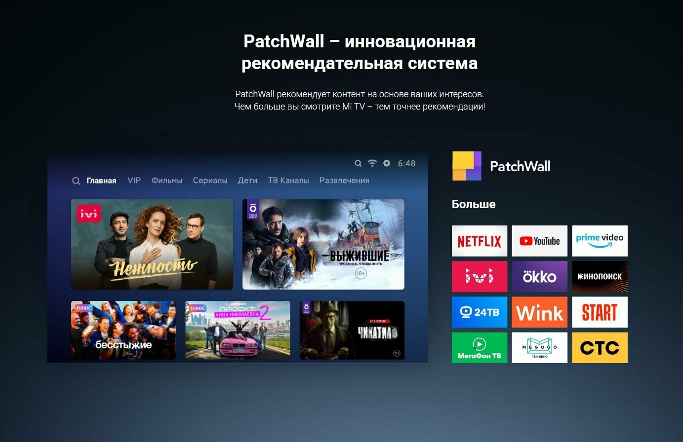 | Минусы: | При использования PatchWall нужно оплачивать онлайн-кинотеатры. |