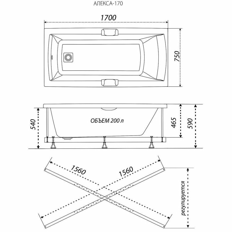 Ванна прямоугольная Тритон акриловая Алекса 1700х750х590 мм (Щ0000049498), (на Х-каркасе)