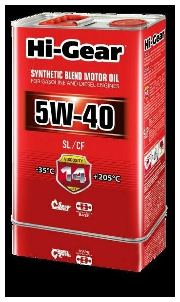 Масло моторное "hi-gear" 5w40 sl/сf (4 л) п/синт. Hi-Gear HG1144