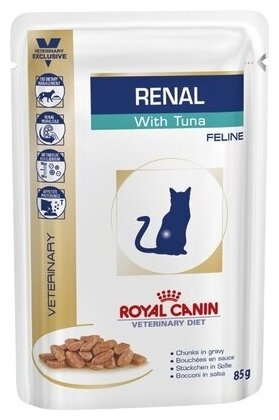 Royal Canin (вет. консервы) Royal Canin вет. паучи для взрослых кошек при лечении почек кусочки в соусе из тунца (renal tuna)85г. (Цена за упаковку, в упаковке 6шт(6х85г))