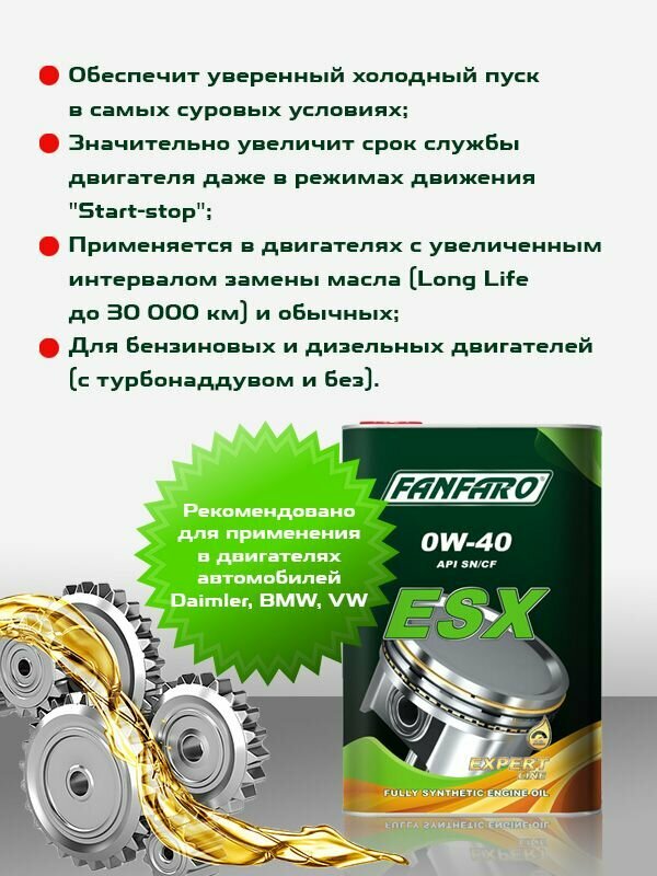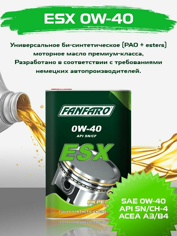Синтетическое моторное масло FANFARO ESX 0W-40 интересное: