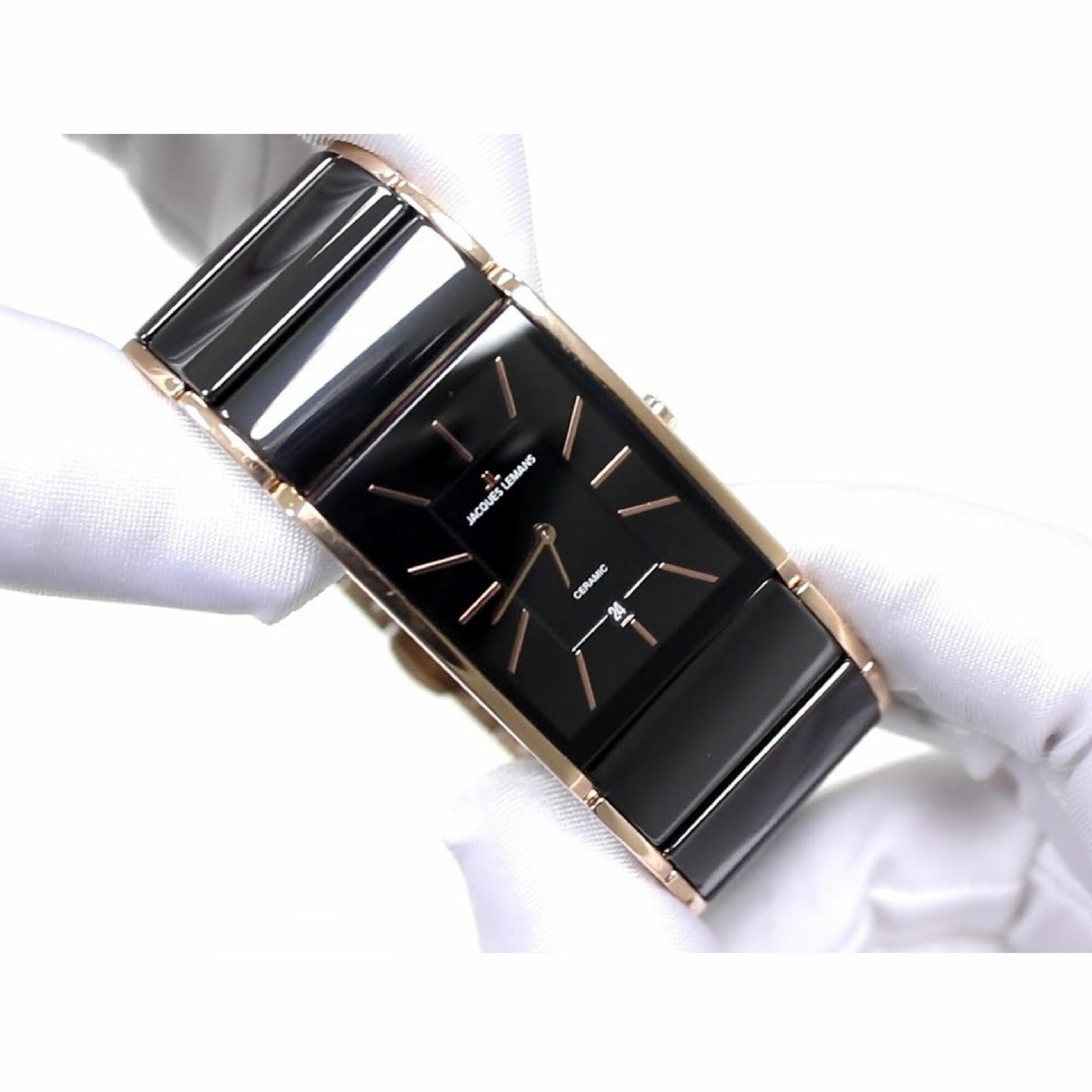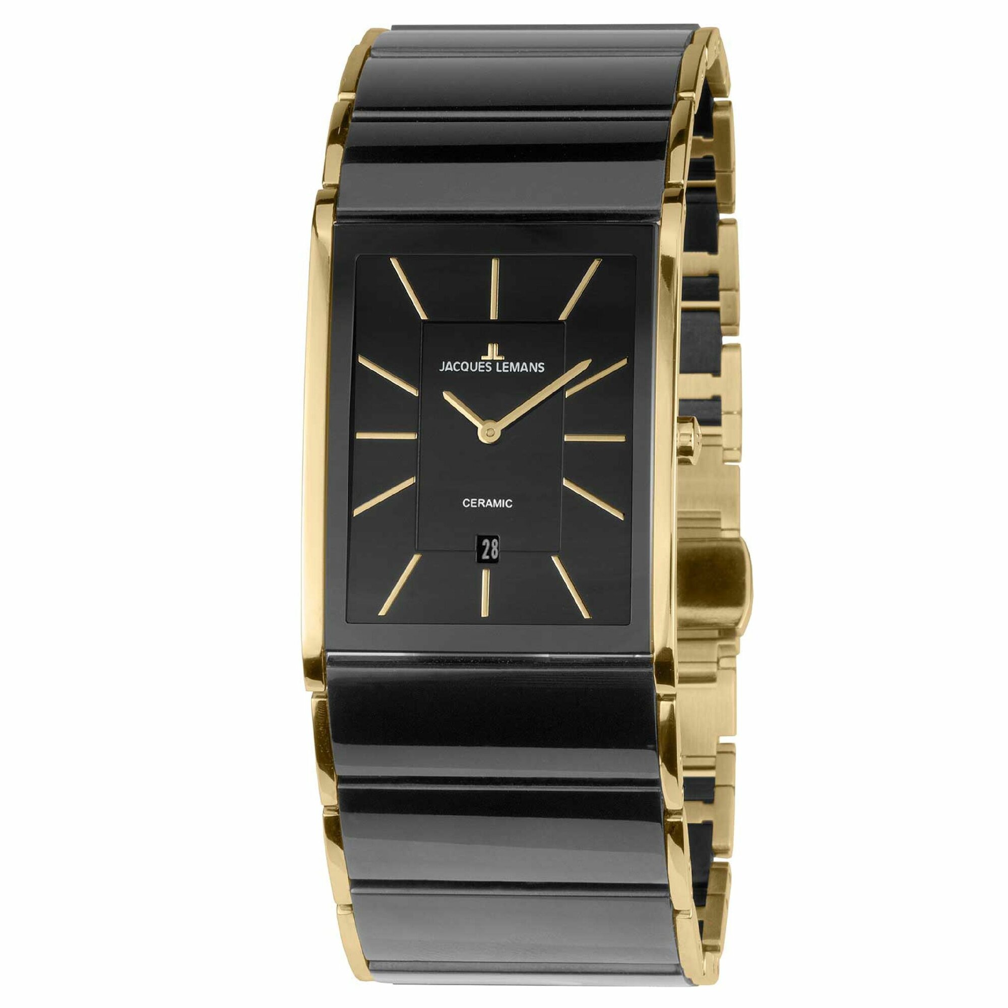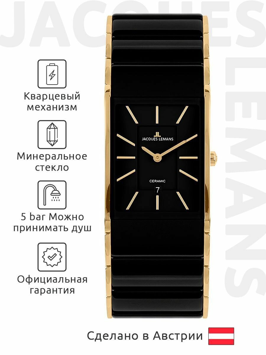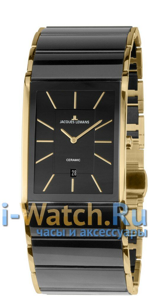 Наручные часы Jacques Lemans 1-1939E, прямоугольные керамические с датой на комбинированном браслете (сталь и керамика)