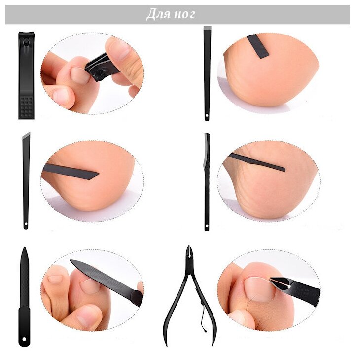 | Состав набора | книпсер, косметическая петля, кусачки для кутикулы, кусачки для маникюра, кусачки для педикюра, лезвия, лопатка маникюрная, ножницы для кутикулы, ножницы для ногтей, ножницы для педикюра, пилка, пилка педикюрная, пинцет, скребок |