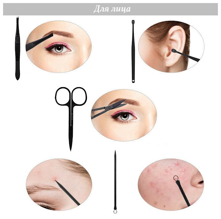 | Дополнительная информация | 15 предметов предназначены для ухода за руками, ногами, лицом, ушами |