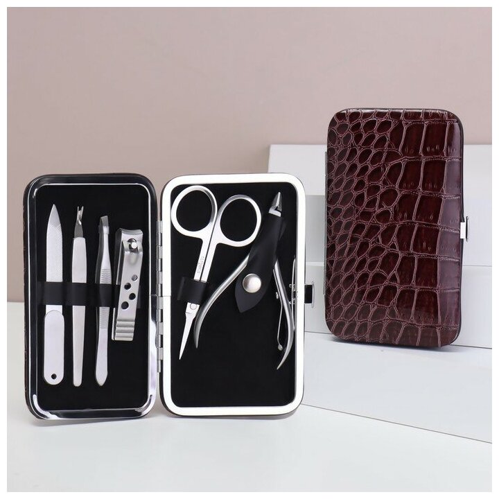 Набор маникюрный Рептилия , 6 предметов, в футляре, цвет коричневый