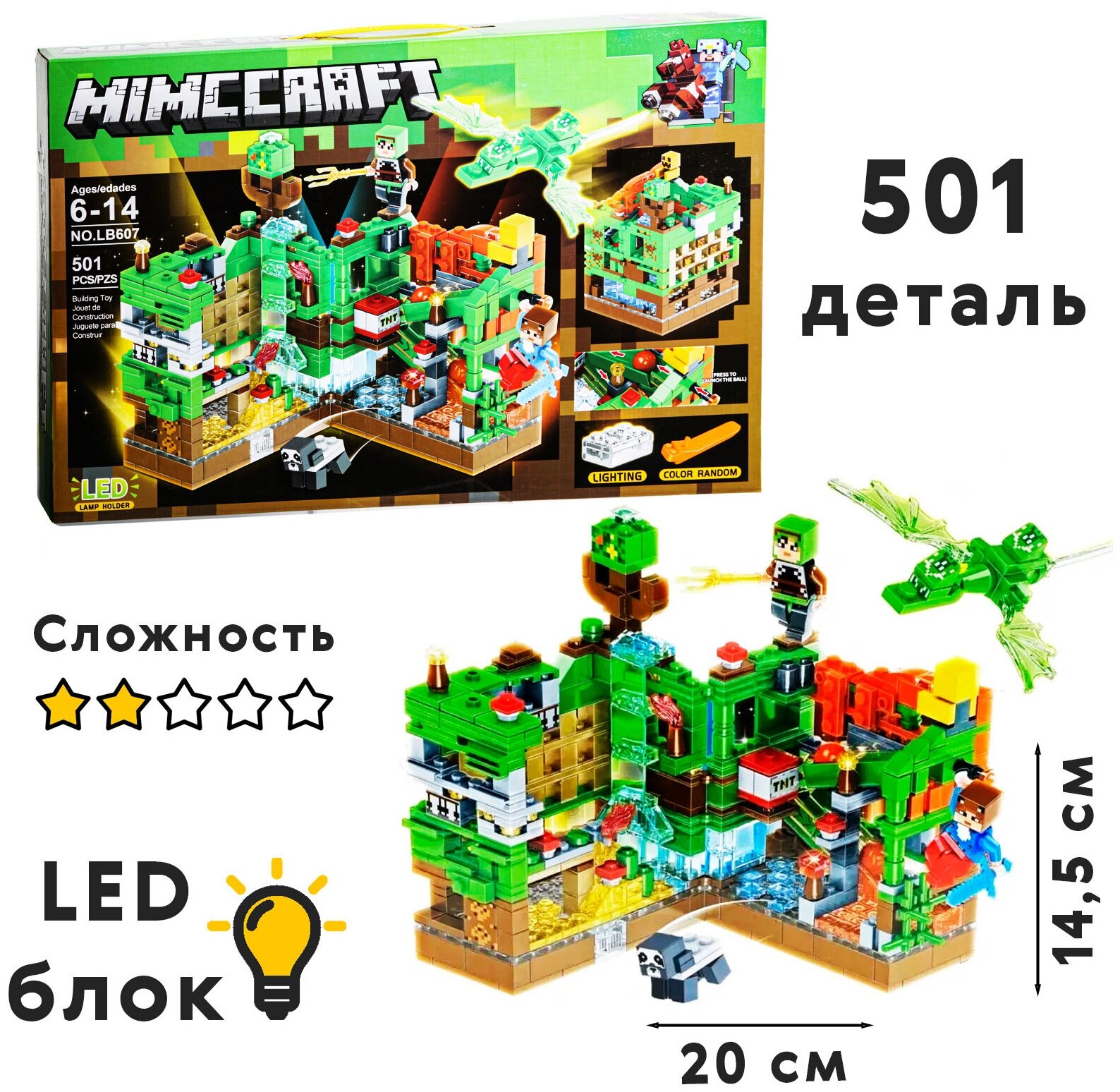 СохранитьКонструктор Minecraft MY WORLD LB607 "Зеленая крепость" 501 дет / Конструктор с LED подсветкой интересное:
